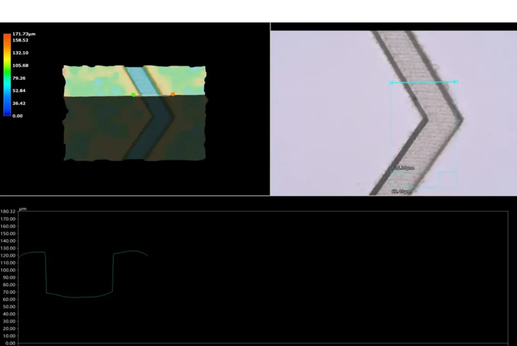 超短パルスレーザ加工 USP Laser Processing ガラス 溝加工 詳細 DETAIL 属性 ガラス・セラミック加工 材料名 ガラス 加工種類 超短パルスレーザ加工 加工方法溝加工 割れやすいガラスにもクラックがなく安定して深さ40µmのチャネルが形成されています。 関連キーワード KEYWORD ガラス 微細溝加工 機械部品応用