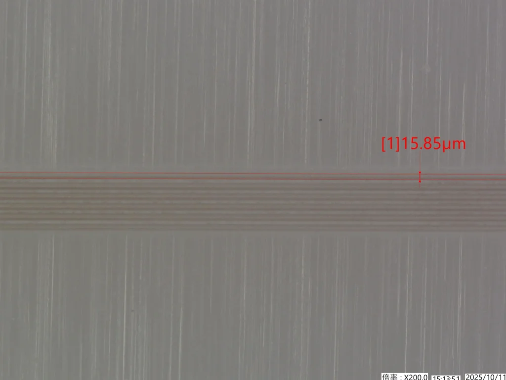 超短パルスレーザ加工 USP Laser Processing ジルコニア 微細溝加工 詳細 DETAIL 属性 ガラス・セラミック加工 材料名 ジルコニア 加工種類 溝加工 加工方法溝加工 幅16µmの精密な溝をジルコニアに加工。材料を問わず加工できる点がレーザの魅力です。 関連キーワード KEYWORD ジルコニア 微細 溝