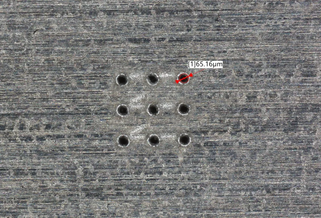 超短パルスレーザ加工 USP Laser Processing 65µm止め穴加工 詳細 DETAIL 属性 金属加工 材料名 Al 加工種類 穴加工 加工方法穴加工 アルミへ微細な止め穴加工。レーザを制御して貫通穴だけではなく、止め穴も自在に加工できます。 関連キーワード KEYWORD アルミニウム 微細 止め穴