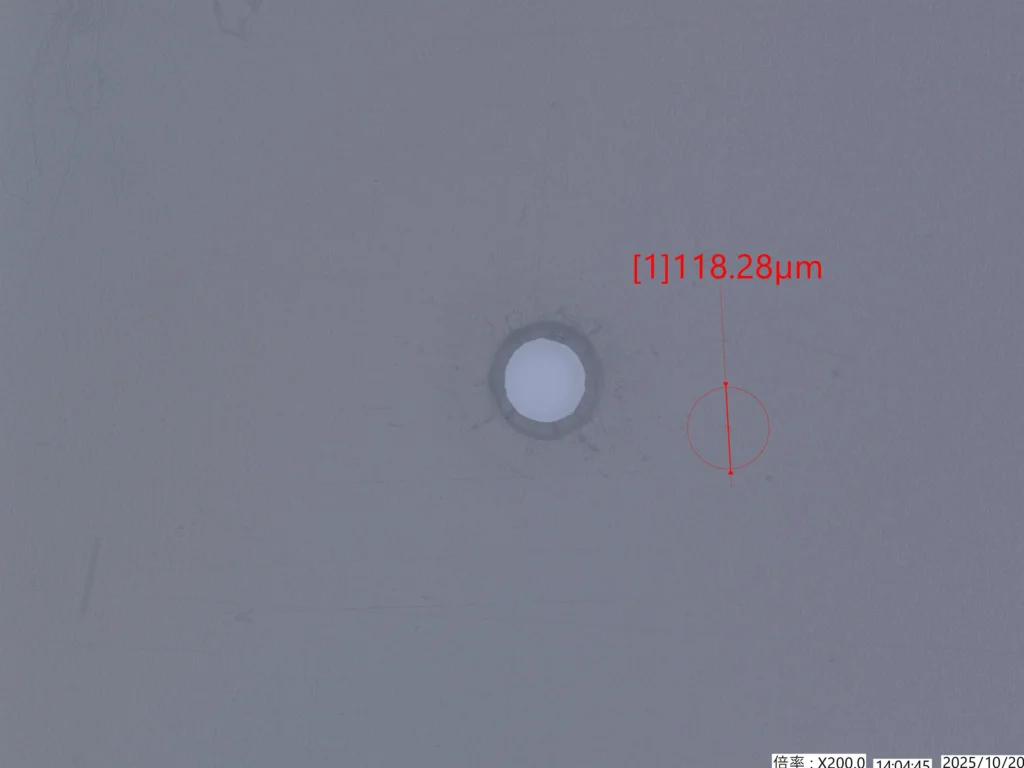 超短パルスレーザ加工 USP Laser Processing POM 穴加工 詳細 DETAIL 属性 ガラス・セラミック加工 材料名 POM 加工種類 穴加工 加工方法穴加工 厚さt0.5mmのPOMに直径φ120µmの貫通穴加工。樹脂材料へも微細加工が可能です。 関連キーワード KEYWORD POM 穴加工 精密