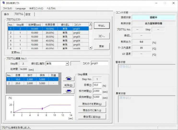 - 専用ソフトウェア:標準にて外部アナログ信号による光制御、出力プロファイルソフト付属。